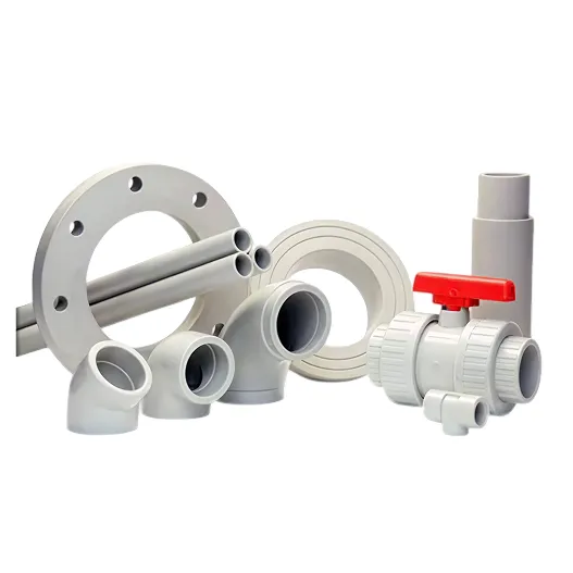 We offer a full range including elbows (45°/90°), tees, couplings, reducers, flanges, unions, end caps, valves (ball, butterfly, diaphragm), compression fittings, socket, butt and electrofusion types.